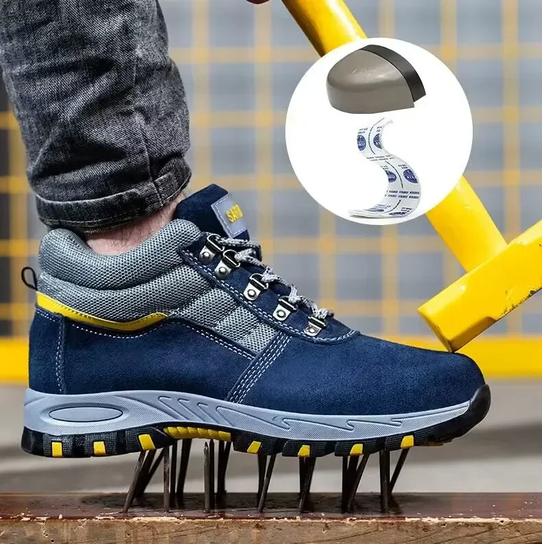 Diese strapazierfähigen Sicherheitsschuhe wurden für Männer entwickelt, die zuverlässigen Schutz benötigen, ohne auf Komfort verzichten zu müssen. Sie sind mit fortschrittlicher Anti-Smash- und Anti-Stab-Technologie ausgestattet und verfügen über eine Stahlkappe, die Ihre Füße vor schweren Stößen und scharfen Gegenständen schützt. Diese Schuhe eignen sich perfekt für das Baugewerbe, die Fertigung und andere risikoreiche Umgebungen und bieten die notwendige Strapazierfähigkeit, um jede Herausforderung zu meistern. Sie vereinen Funktionalität und Stil, damit Sie sicher sind und gleichzeitig gut aussehen.