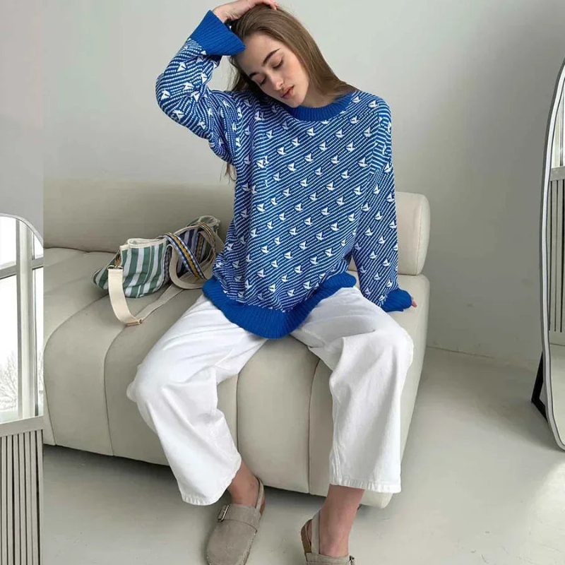 Der Alisa Pullover hat eine entspannte Silhouette, die mühelos fällt und den ganzen Tag bequem ist. Der Rundhalsausschnitt sorgt für einen klassischen, cleanen Look, der zu jedem Outfit passt. Die langen Ärmel sorgen für einen kuscheligen Touch und halten den Style schlicht und vielseitig. Dieser Pullover passt sich Ihren Bewegungen an und vereint Komfort und Leichtigkeit perfekt. Er ist ein Must-have für jede lässige Garderobe.