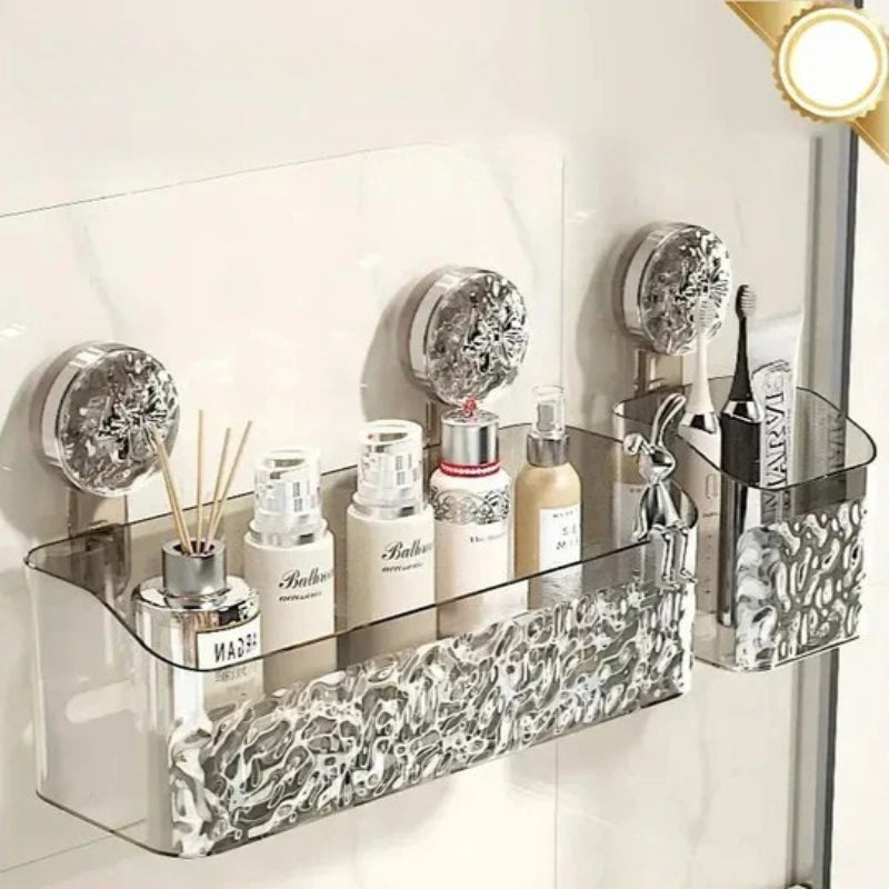 CleanHold sorgt für Ordnung, ganz ohne Bohren oder Wandschäden. Die starken Saugnäpfe haften sicher auf glatten Oberflächen wie Fliesen und Glas und ermöglichen so eine schnelle und einfache Montage. Perfekt für Badezimmer, Küchen oder Büros: Dieses Regal bietet zusätzlichen Stauraum, wo immer Sie ihn brauchen. Sie können es leicht bewegen und wiederverwenden, ohne Spuren zu hinterlassen. Genießen Sie bequeme, beschädigungsfreie Ordnung mit CleanHold.