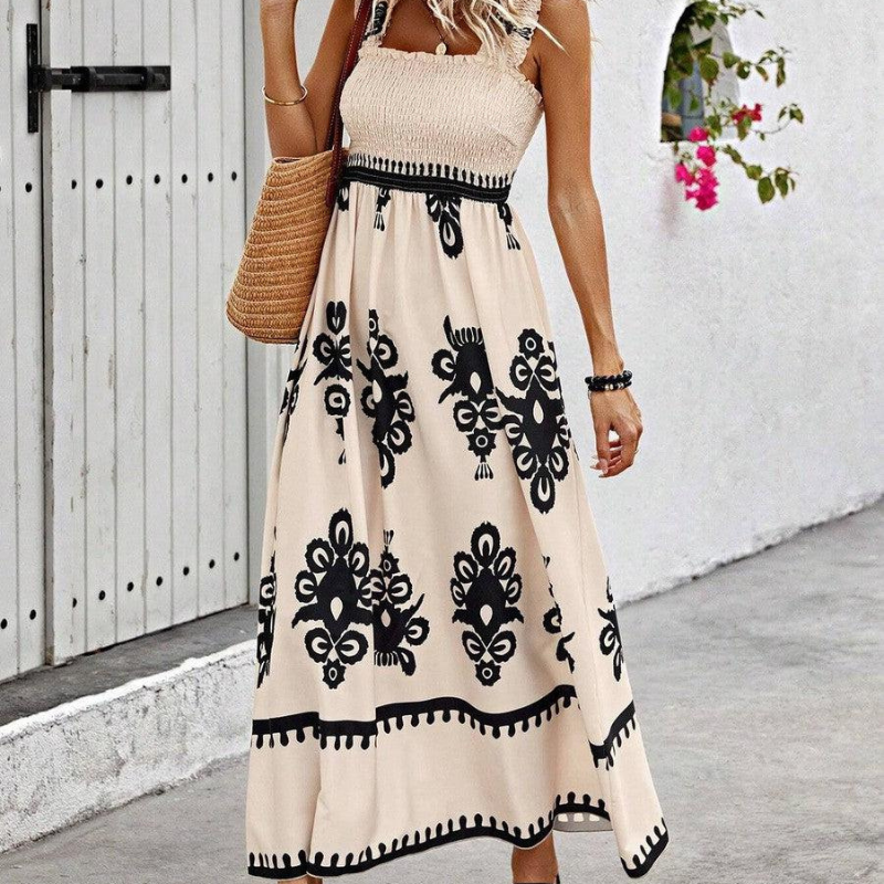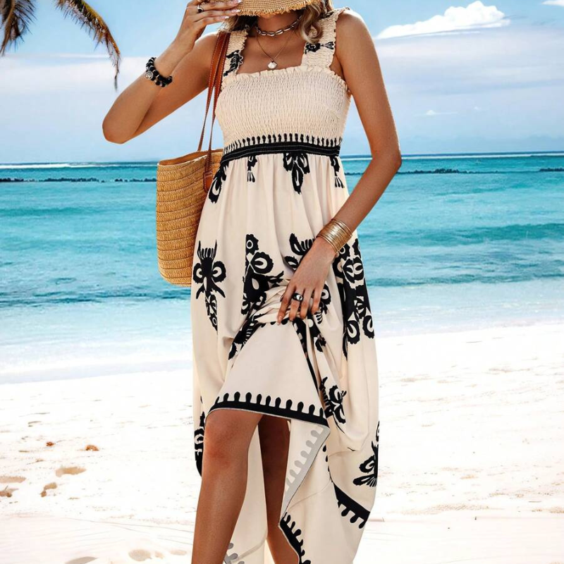 Das ärmellose Kleid Daria besticht durch seine weiche, fließende Form für hohen Tragekomfort. Die breiten Träger liegen perfekt auf den Schultern und verleihen dem Look eine sanfte Struktur. Die hohe Taille verleiht der Silhouette eine definierte Form, ohne einzuengen. Das Print-Design setzt einen markanten Akzent, der ausdrucksstark und dennoch ausgewogen wirkt. Dieses Kleid ist perfekt für alle, die einen schlichten, selbstbewussten Stil bevorzugen.