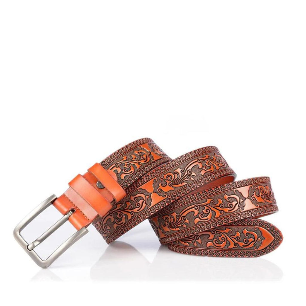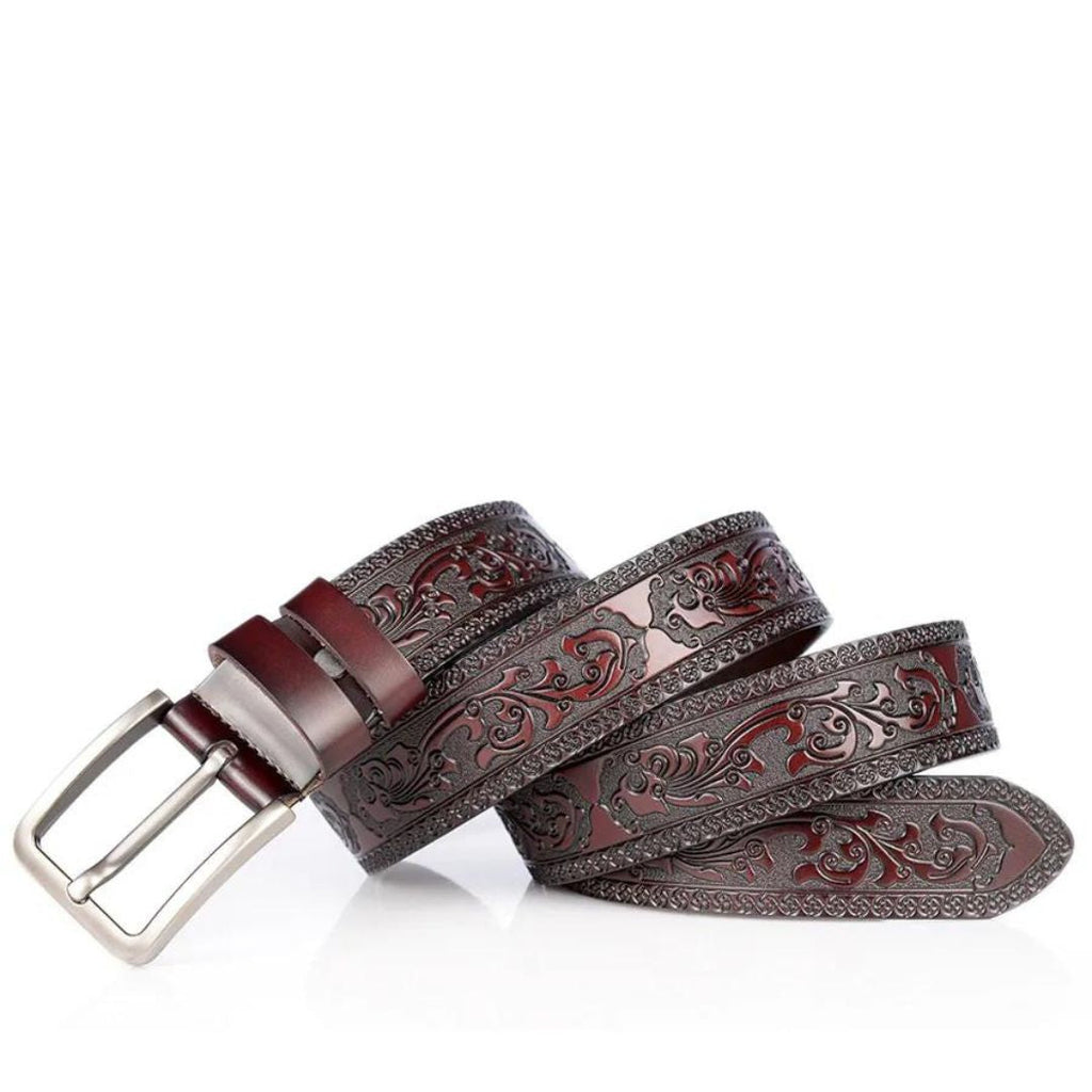 Dieser Gürtel besticht durch sein klassisches Prägedesign, das Struktur und Raffinesse verleiht. Die Dornschließe verleiht dem Look einen eleganten Touch, ohne ihn zu überladen. Er passt sowohl zu lässiger als auch zu formeller Kleidung. Die Kombination dieser Elemente schafft ein zeitloses Accessoire, das jedes Outfit aufwertet. Perfekt für alle, die Wert auf Liebe zum Detail und Stil legen.