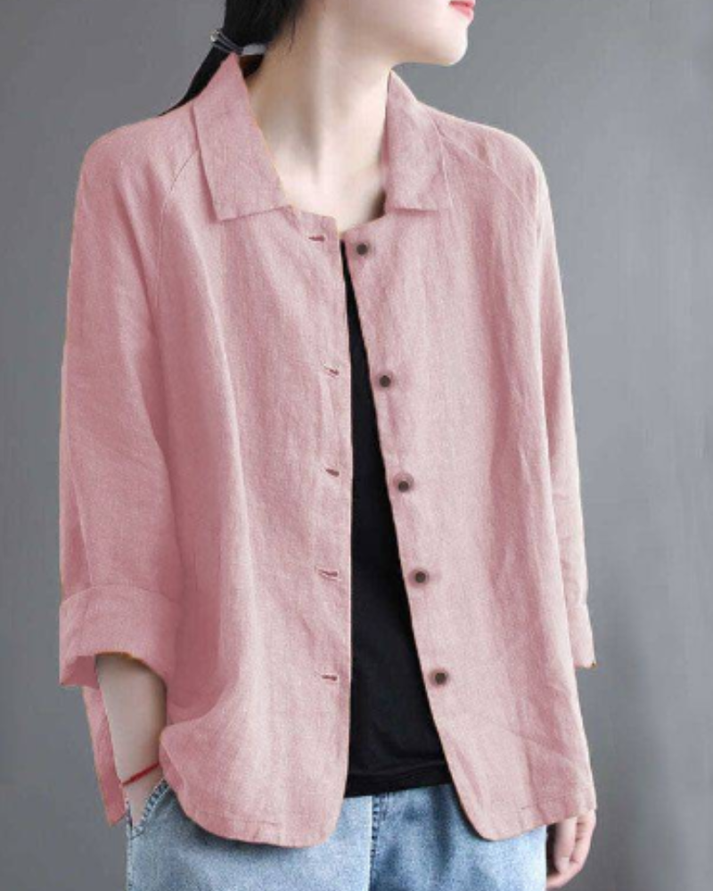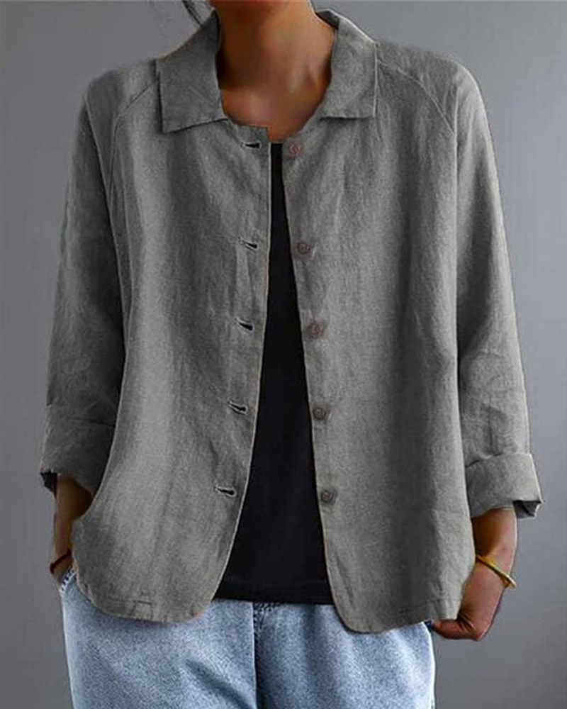 Diese Bluse lässt sich mühelos lässigen Anlässen bis hin zu eleganteren Looks kombinieren und passt perfekt zu Röcken, Jeans oder Hosen. Die langen Ärmel bieten Schutz, während die lockere Passform ganztägigen Tragekomfort garantiert. Die Knopfleiste verleiht einen klassischen Touch und macht diese Bluse zu einem Must-have für jede Garderobe. Sie sorgt für Stil und Komfort, egal wohin Sie gehen.
