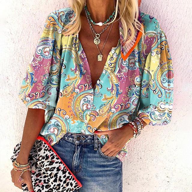 Sehnst du dich nach einem Kleidungsstück, das so lebendig und fröhlich ist wie deine Persönlichkeit? Möchtest du ein modisches Statement abgeben, das deine Individualität unterstreicht? Das Mya – elegante Top mit Blumenmuster und kurzen Ärmeln verfügt über ein farbenfrohes Paisley-Design mit einer hellen Farbpalette und luftigem Schnitt, gemacht für trendbewusste Fashionistas. Bist du bereit, mit diesem atemberaubenden Top überall einen bleibenden Eindruck zu hinterlassen?