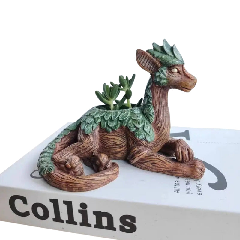 Verleihen Sie Ihrem Raum einen Hauch von Fantasie mit MythiRoot, einem drachenförmigen Pflanzgefäß in verspielter Streckpose. Es bietet Platz für kleine Pflanzen und kann auch allein als Dekorationsstück stehen. Die detailreiche Formgebung verleiht Persönlichkeit, ohne von umstehenden Gegenständen abzulenken. Perfekt für Räume, die kreative und heitere Akzente wertschätzen.