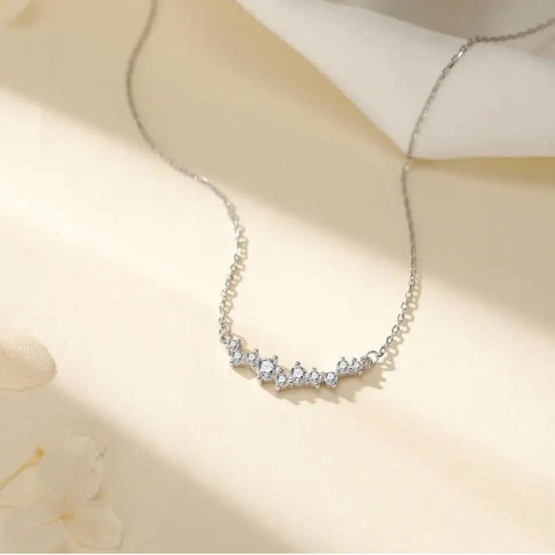 Diese Halskette präsentiert eine raffinierte Kette mit einem zarten Anhänger, der genau das richtige Maß an Schimmer verleiht. Das Design schafft die perfekte Balance zwischen Eleganz und modernem Stil und eignet sich sowohl für den Alltag als auch für besondere Anlässe. Die anmutige Form zieht die Blicke auf sich, ohne aufdringlich zu wirken. Ein vielseitiges Schmuckstück, das sich mühelos in jede Schmuckkollektion einfügt.