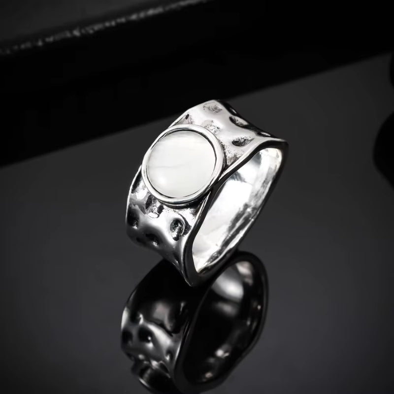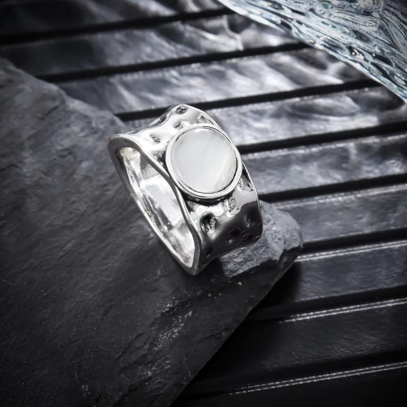 Der Rico Ring besticht durch seinen sanft schimmernden Mittelstein, der Ihrem Look sanftes Licht und Charme verleiht. Seine glatte Form und die klaren Linien verleihen ihm ein ruhiges, elegantes Gefühl und passen perfekt zu Alltagsoutfits oder besonderen Looks. Das Design fällt auf, ohne aufdringlich zu sein – perfekt für alle, die dezente Eleganz bevorzugen. Die Fassung umrahmt den Stein wunderschön und sorgt gleichzeitig für sicheren Halt und Sichtbarkeit. Dieses Schmuckstück vereint Stil und Komfort auf eine moderne und zeitlose Art und Weise.