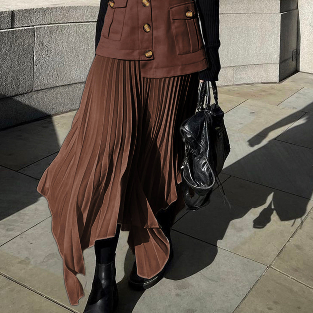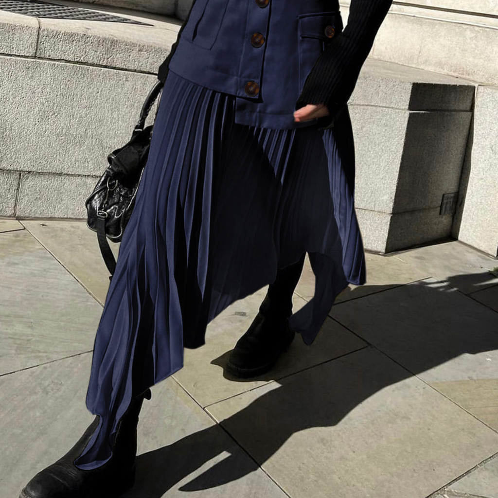 Soraya ist so anpassungsfähig wie ausdrucksstark und lässt sich nahtlos zwischen Alltag und elegantem Look kombinieren. Der plissierte Saum verleiht Ihrem Look Rhythmus und Form und verleiht ihm Dimension und Leichtigkeit. Ob mit einem eingesteckten Oberteil oder einer übergroßen Lage – er behält seine Form und seinen Charakter von morgens bis abends.