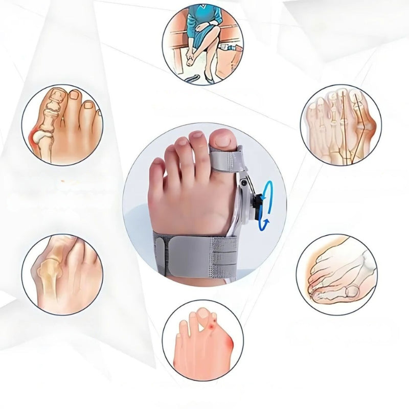 Der ToeRelief Hallux Valgus Corrector wurde entwickelt, um Ihre Zehen sanft in eine natürliche Position zu bringen. Der drehbare Zehentrenner lindert Druckpunkte gezielt, um Beschwerden zu lindern und die Beweglichkeit zu unterstützen. Dank der verstellbaren Riemen sitzt er sicher und bequem an verschiedenen Fußgrößen. Leicht und bequem zu tragen, ist er ideal für den täglichen Gebrauch. Verabschieden Sie sich von Ballenzehenschmerzen und genießen Sie wieder selbstbewusstes Gehen.