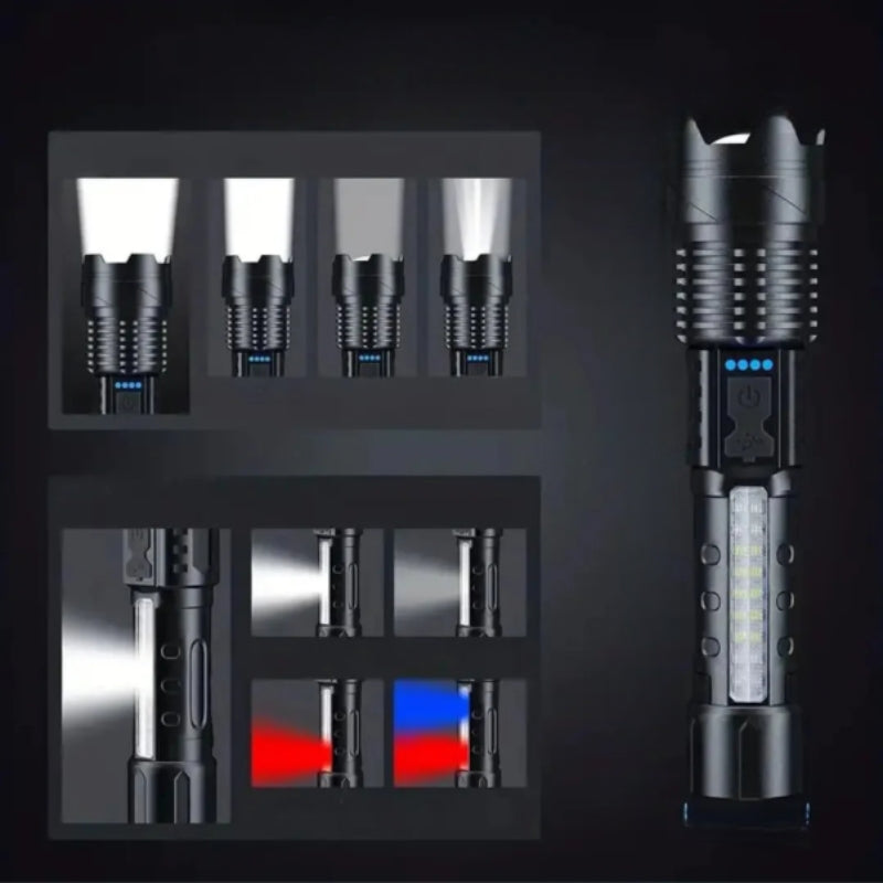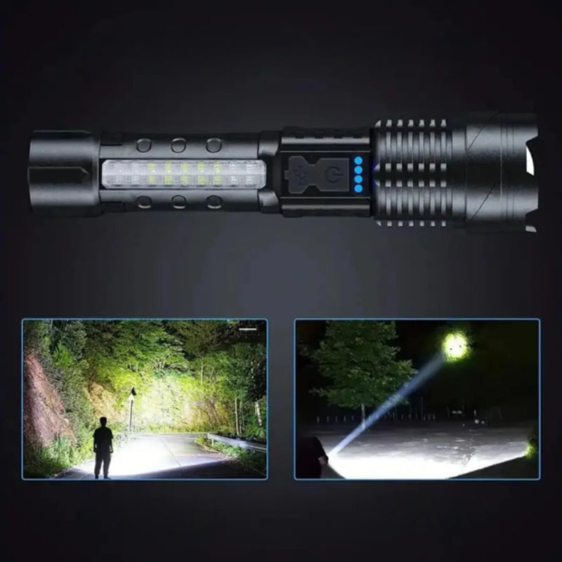 TorchTrek bietet außergewöhnliche Helligkeit und Zuverlässigkeit für jede Outdoor- oder Notfallsituation. Ob Sie auf dunklen Wegen unterwegs sind, nachts Ihr Zelt aufbauen oder einen Stromausfall haben – diese Taschenlampe bietet Ihnen genau dann Klarheit, wenn Sie sie brauchen. Ihr starker Lichtstrahl reicht weit und sorgt für optimale Sicht. Dank ihrer robusten Bauweise trotzt sie Stürzen, Stößen und unerwartetem Wetter. Mit TorchTrek sind Sie immer bereit für die Dunkelheit.