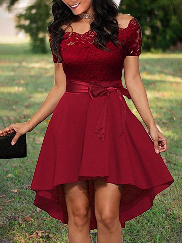 Das Kleid mit seiner klassischen A-Linien-Silhouette ist ab der Taille leicht ausgestellt und schafft so eine schmeichelhafte Form, die verschiedenen Körperformen schmeichelt. Der asymmetrische Saum verleiht einen modernen und dynamischen Touch und ermöglicht anmutige Bewegungen und einen Hauch von Eleganz beim Gehen.