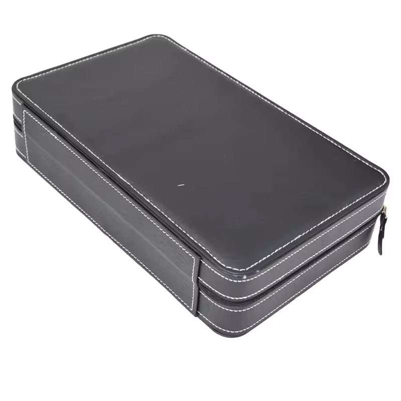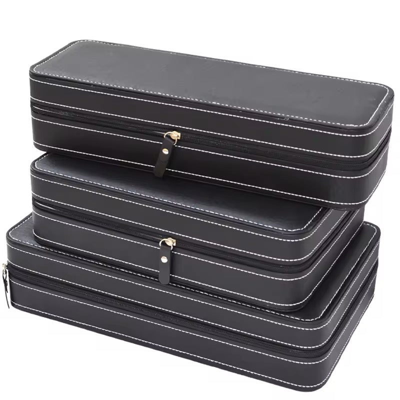 Diese Aufbewahrungsbox schützt Ihre Uhren sicher vor Kratzern und Beschädigungen. Die Innenfächer sorgen dafür, dass die Uhren beim Transport oder bei der Lagerung sicher an ihrem Platz bleiben. Der Reißverschluss bietet zusätzlichen Schutz vor versehentlichem Öffnen. So bleibt Ihre Sammlung überall und gut geschützt. Die perfekte Kombination aus Funktionalität und Eleganz.