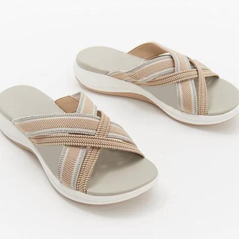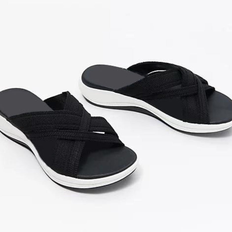Die offenen Zaneah Hausschuhe bieten dauerhaften Komfort bei jedem Schritt und sind somit ideal für den Alltag zu Hause oder unterwegs. Dank des doppellagigen Memory-Schaums bieten sie weichen Halt und helfen gleichzeitig, Ihre Füße zu stabilisieren und zu stützen. Die flache, rutschfeste Sohle sorgt für sicheren Halt auf jedem Untergrund und reduziert so das Risiko von Ausrutschern und Stürzen. Diese Hausschuhe absorbieren Stöße und reduzieren Reibung, sodass Ihre Füße den ganzen Tag entspannt bleiben. Genießen Sie mühelosen Komfort von morgens bis abends.
