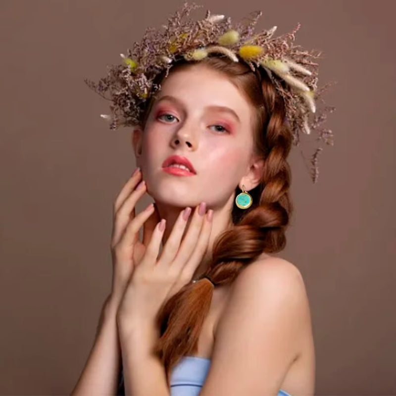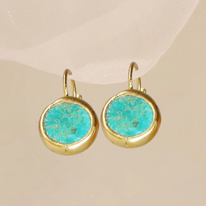 Die Ziska Ohrringe bestechen durch ihr abgerundetes Design mit weicher, ungleichmäßiger Textur, die jedem Schmuckstück einen einzigartigen und natürlichen Look verleiht. Ein leuchtendes Türkis-inspiriertes Zentrum sorgt für die richtige Helligkeit und sorgt gleichzeitig für ein ausgewogenes und raffiniertes Gesamtbild. Diese Ohrringe vereinen künstlerische und geerdete Elemente und passen perfekt zu jedem Outfit. Sie bieten eine moderne Form mit erdigem Charme und fallen auf, ohne Ihren Stil zu überlagern. Ideal für den Alltag oder besondere Momente, in denen Sie sich etwas Besonderes wünschen.
