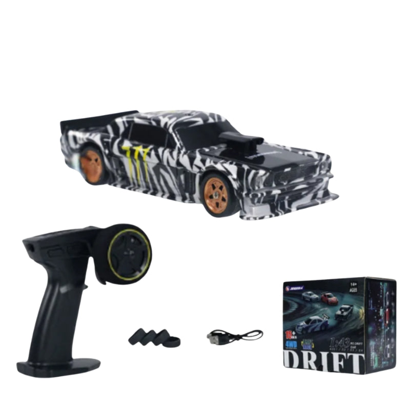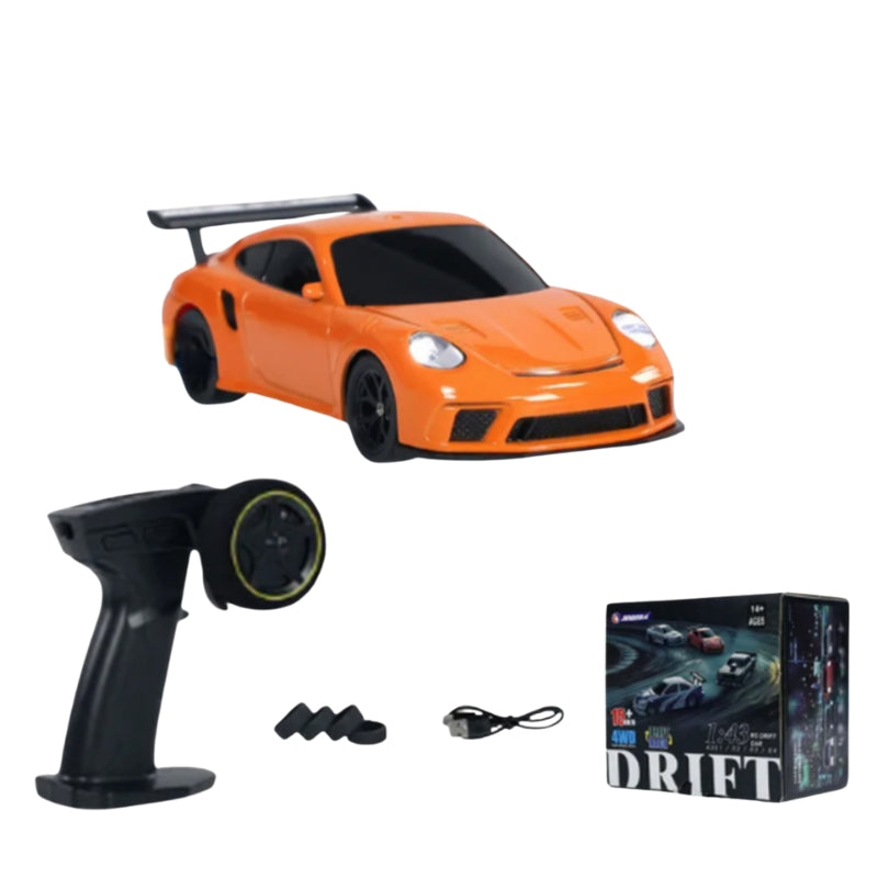 Dieser Rennwagen liegt gut in der Hand und bietet dennoch Power und Geschwindigkeit. Entwickelt für sanftes Driften und schnelle Reaktionen, fühlt er sich selbst auf kleinen Flächen wie eine große Rennstrecke an. Die Fernbedienung reagiert schnell, sodass Sie in Ihrem eigenen Tempo lenken, anhalten und driften können. So genießen Sie rasantes Fahren in Innenräumen oder auf engstem Raum. Jede Drehung fühlt sich präzise und kontrolliert an.